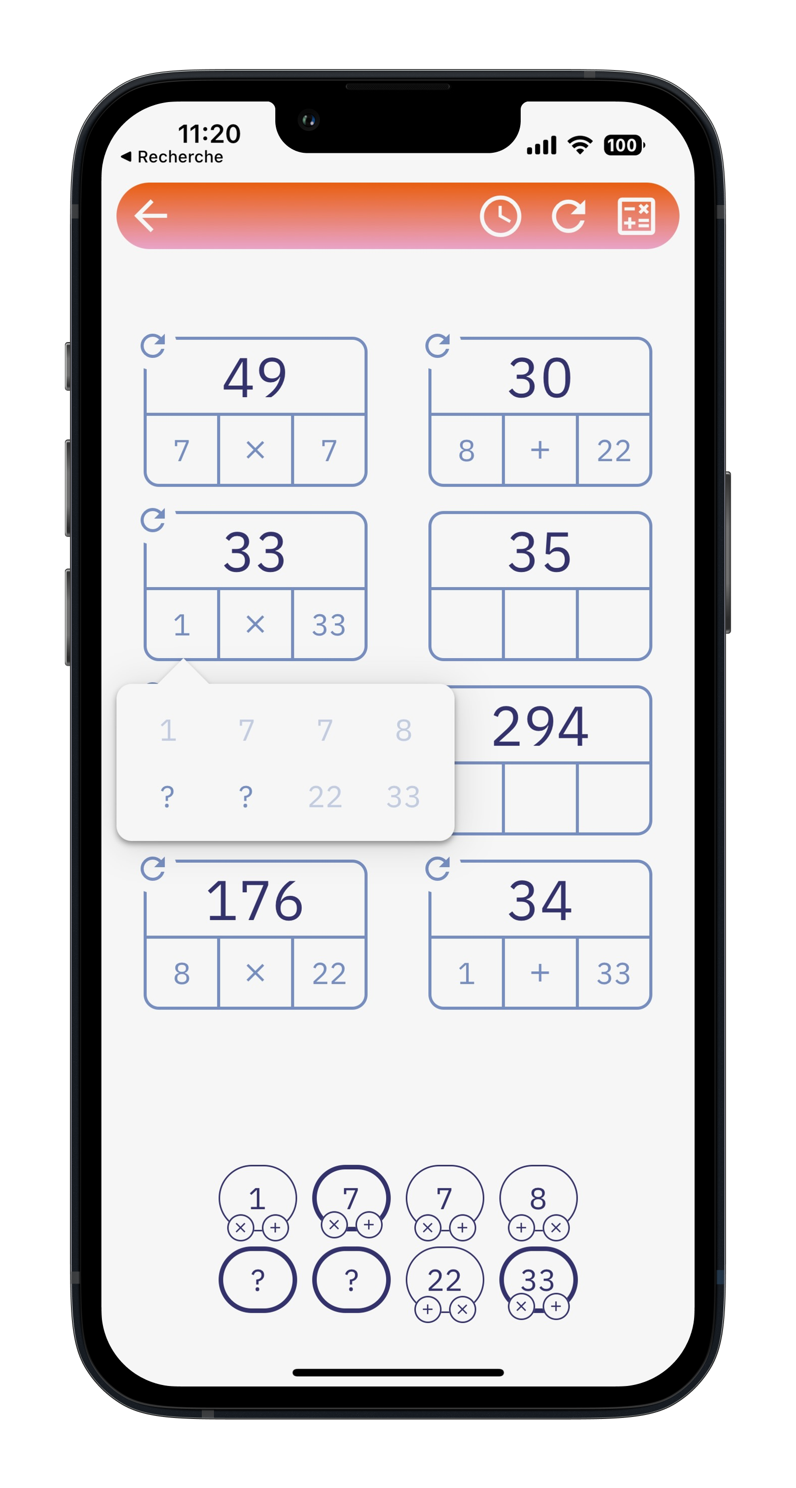 - Use your deduction skills and show strategy to solve a 6 or 8 boxes grid by finding the right operations.